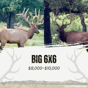 We are thrilled to introduce an exciting new opportunity at our historic high fence ranch, Styx Canyon. Now, you have the chance to experience exhilarating hunts and harvest opportunities for Oklahoma Elk (cows or bulls) and Red Stag (Hinds) on our premises! This ranch has remained untouched by hunting for several years, and in our inaugural season, we achieved successful harvests of impressive bulls as well as an abundance of elk. We are delighted to offer trophy elk hunts ranging from 300″ to over 400″. Additionally, we will continue to offer management hunts for bulls/spikes, and cows, ensuring a steady supply of healthy protein for your freezer.